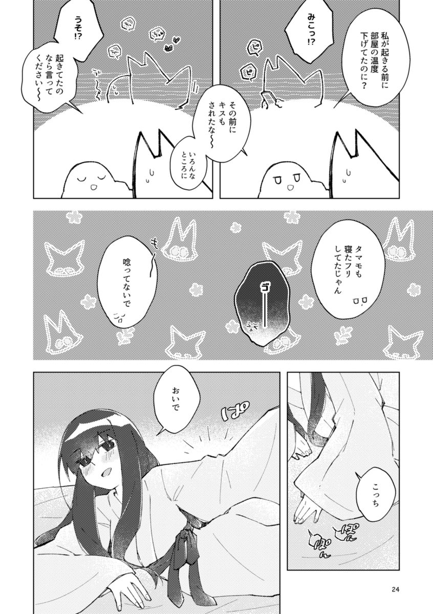 またイベント出ないのに本が出ます!どうして?? 狐女主短編集『なつのしずく』サンプルです。 ひたすらイチャイチャする玉藻ちゃんと白野ちゃんのお話がなんとなく夏っぽい味で3本収録されています。 (リプにもサンプル続きます) 通販は今回も🍈さんにて〜〜 melonbooks.co.jp/detail/detail.…
