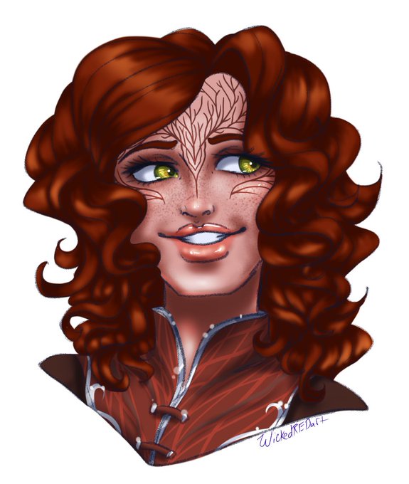 My Inquisitor Lavellan in the #DragonAgeAbsolution style! this one is super fun to do. Maye i'll make these a commission type?? lmk what u think! #DragonAge #digitalart #HumanArtist