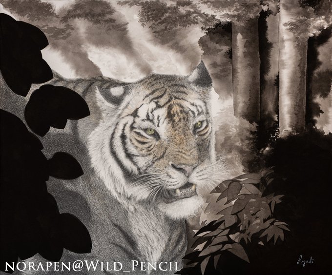 #10月になったのでフォロワーさんに自己紹介しようぜ 鉛筆、アクリル、墨、透明水彩など複数の画材を組み合わせて動物描いてます😸 展示にはマイ虫眼鏡を持参する方がいるくらいの細密表現です。 拡大してご覧ください✨