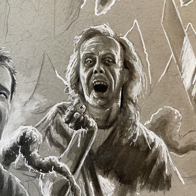 Inktober Day 12: A Nightmare on Elm Street 4: The Dream Master (1988) the last solid entry in the franchise until New Nightmare, and it’s got a dog peeing fire. What’s not to love? • • • #willshorrortober #inkbrush #anightmareonelmstreet #freddykrueger #willpottorff #inktober