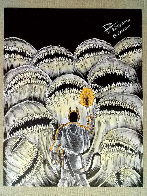 Inktober2020 8.TEETH many, many teeth ... #inktober #inktober2020 #Last #day8 #teeth #monsters #creatures #gelatinous #adventurous #torch #devil #guy #darkness #traditional #drawing #art #illustration #fantasy