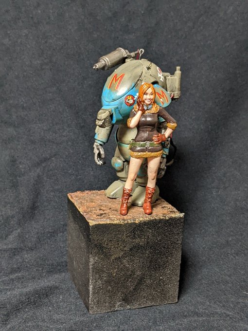 先日購入した佐藤ミナミフィギュア無事大地に立つ。AFVモデラーの前にそういやワテクシ、マシーネラーだった😅彼女のかわゆさが感じれる良造形キットでございました。ラクーンも彼女専用機と言うことでMマーク! #佐藤ミナミ #マシーネンクリーガー #広がれマシーネンの輪 #ガチャーネン作るネン