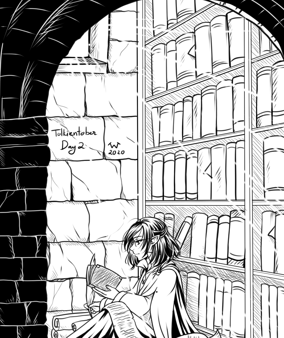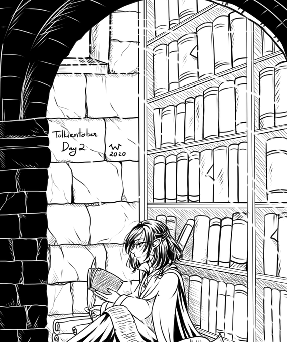 Day 2 of #Tolkientober and #inktober2020 - Yourself in Middle-Earth A nerd scholar 😂 Library is my home 😄 @hobbitgay