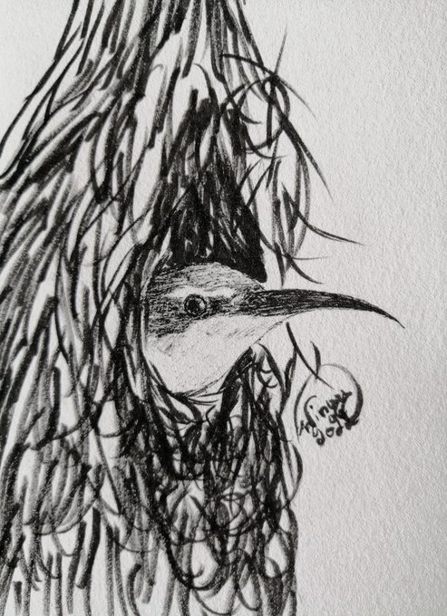 Day 9 of #Inktober #Nest A Sunbird in her nest :) It's being like, 'peekaboo'! :) #Sunbird #birdart #inktober2022 #Inktober2022Nest #InktoberNest #InktoberChallenge