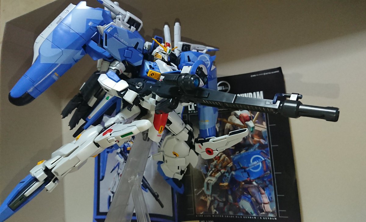 #ガンプラの画像貼るとRTされると聞いて 個人的に今年一番のお気に入り! 平成最後のMG、 《MG Ex-Sガンダム/Sガンダム》 なんちゃってスプリンター迷彩と付属のマーキングシールだけですが、サイズと造形が凄まじいので大満足! これの箱をレジに持っていく時の、子供たちからの視線の痛いこと!