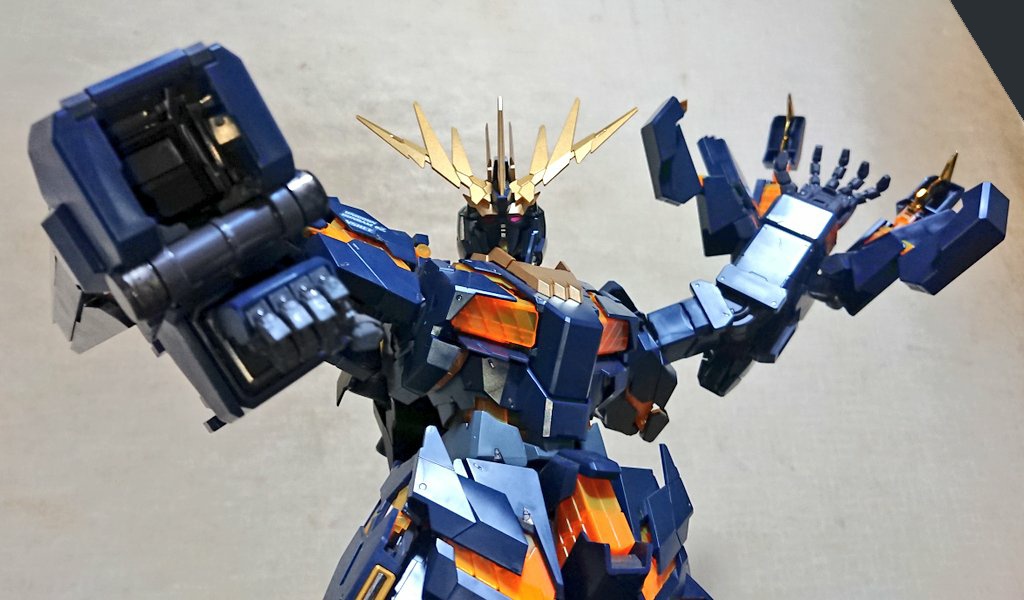 #ガンプラ #機動戦士ガンダムUC 『“ガンダム”は、敵……ッ!!』 PGバンシィ[マリーダ・クルス仕様]です! ノルンよりボリュームが減るかと思いきや巨大なBSと凶悪なVNのおかげでむしろ圧倒的な威圧感が味わえます。 左腕のVNは左右展開で劇中の熊手形態も再現できます。 力強く開いた手が格好良い!