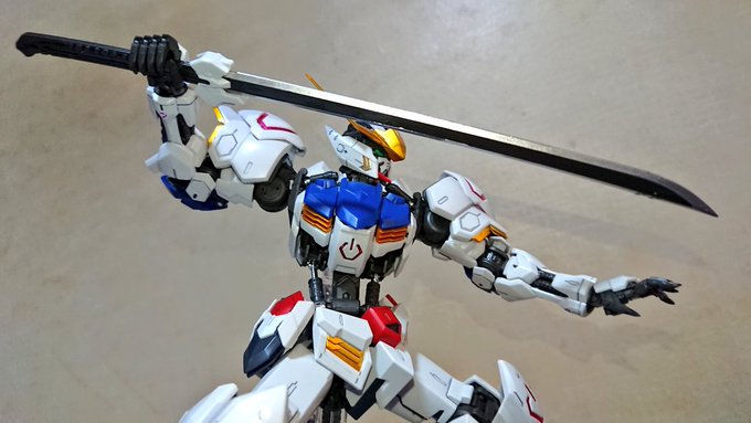 #ガンプラ #鉄血のオルフェンズ 『コイツは、死んでいいヤツだから』 MGバルバトスの刀。シルバーで刀身を塗って光沢ベタ吹き。 刀というより、木刀のような使い方をしていてそれがまた荒々しくて良い! この刀の銘、郷義弘でどうですか。 後で刑部姫ちゃんをお迎えする為の触媒にしたいです。