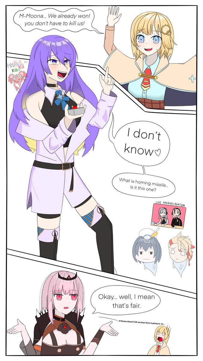 In the latest episode of HoloWorm Z… The water is quickly rising, and Ame’s and Calli’s turns are over! Moona is up next, will she be able to claim victory for holoID!? Find out in this episode of HoloWorm Z!!! #HoshinovArt #callillust #ameliaRT