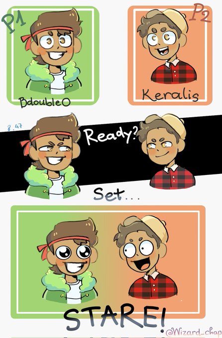 Oh look! A staring contest between the moss man @BdoubleO100 and papa K @WorldofKeralis! :0 Who do you think would win? (Voting poll below) [REMEMBER TO UNTAG] #hermitcraftfanart #hermittwt #bdubsfanart #keralisfanart