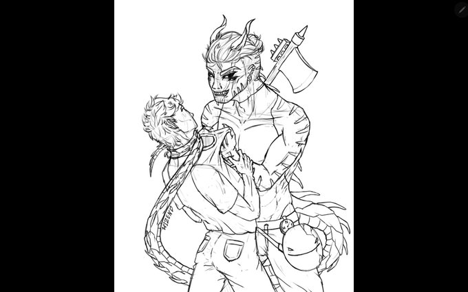 Bad devil goat (hot) dilf and his fiancé - everything as it should be~ It's just a sketch, but who can stop me from posting it? ... Thought so; enjoy #dreamamp #dreamsmpfanart #art #digitalart #schlatt #schlattfanart #quackity #quackityfanart #sketch