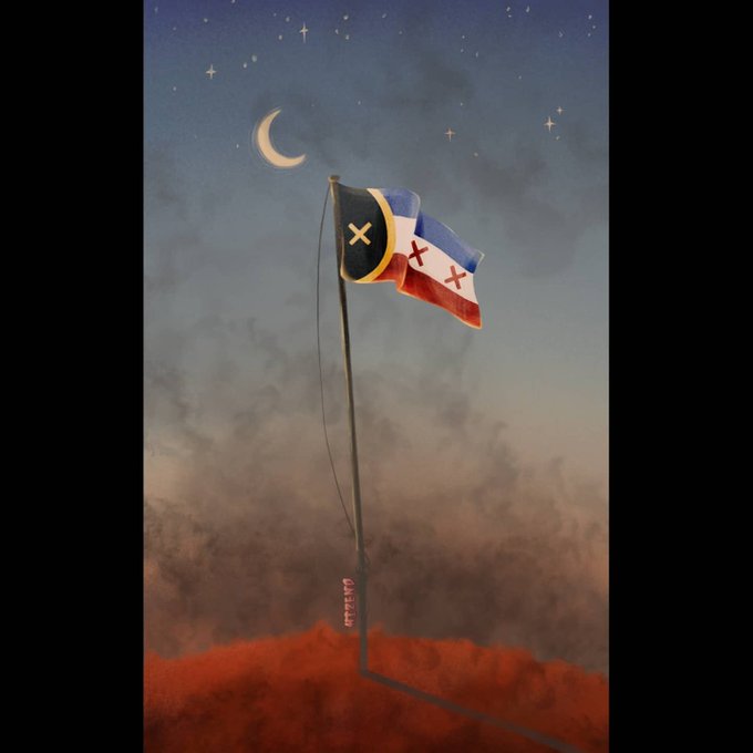 The flag that waves above the fallen country. His unfinished symphony. #dreamsmp #dreamsmpfanart #art #digitalart #wilbursootfanart #lmanburg #wilbursoot #flag