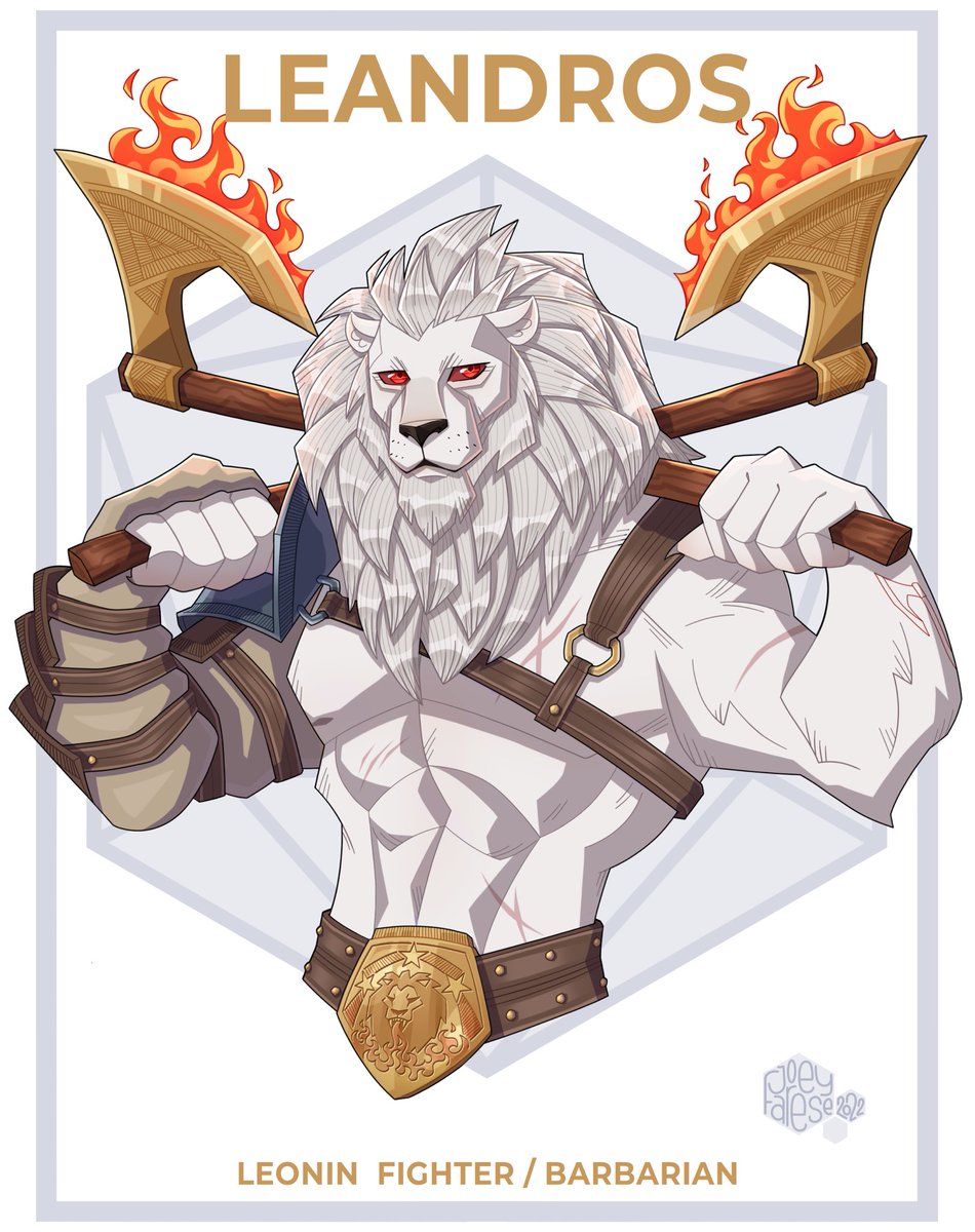 Seaz was born to the leaders of the Embermane and Ironfang prides. He studied at the Artificer Institute for many years before conducting an experiment with curse magic that went horribly wrong. His life saved by intervention and magical seals. • #dndart #charactercommission