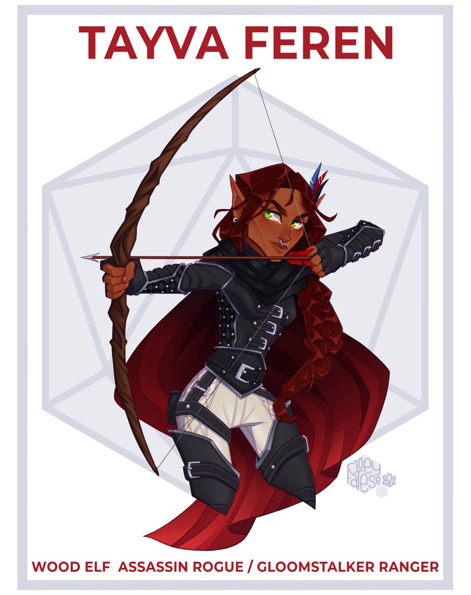 Tayva is a young punk of an elf. She had a very hard life growing up and it has left her jaded toward the world. Though behind her devil may care attitude is a heart of gold. • #characterart #dnd #dnd5e #dndart #charactercommission #thewizardssketchbook #woodelf #rangerrogue