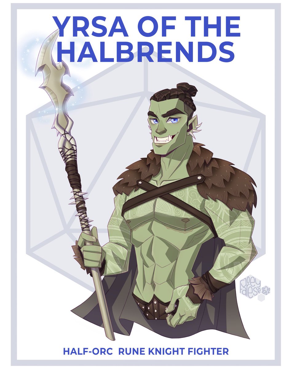 Yrsa is the first Rune Knight in centuries. Yrsa's new mission is to find out more about the giants and learn about the world outside their homeland. • #characterart #dnd #dnd5e #dndart #charactercommission #thewizardssketchbook #halforc #runeknight