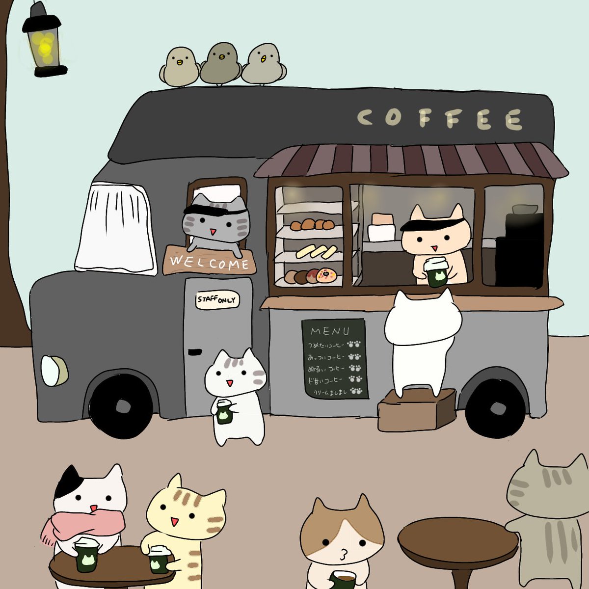 コーヒー屋さんに会いました #ゆるいイラスト #移動販売車 #絵柄が好みって人にフォローされたい
