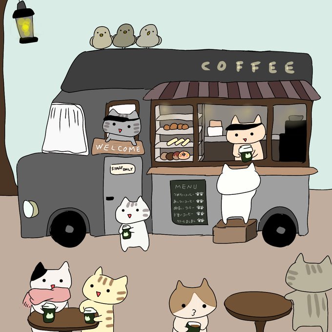 42 515 コーヒー屋さんに会いました #ゆるいイラスト #移動販売車 #絵柄が好みって人にフォローされたい 23/01/08 15:25