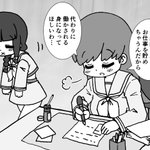 7 25 熊本に住む友人の誕生日祝いに、熊元に住む可愛い女の子を描きました。 23/03/02 00:18