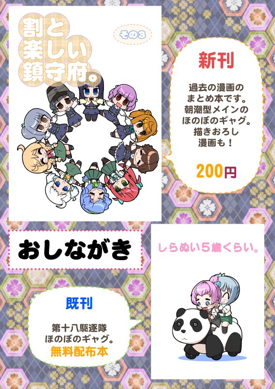 おしながき。 12日土曜日 東地区 イ-33aです。 まとめ本。少しですが描き下ろしあり。 色紙も持って行きます。 よろしくお願いします。