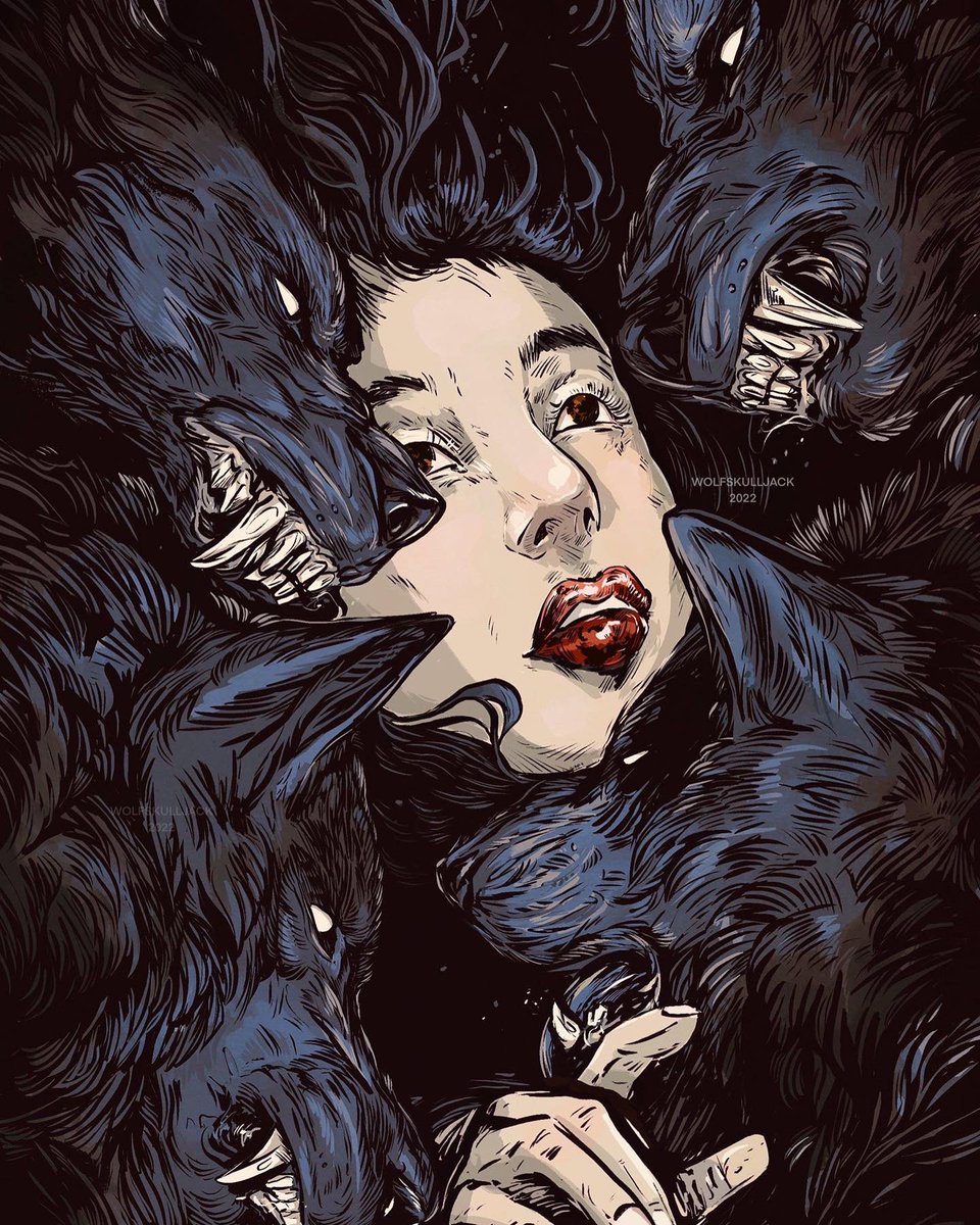 It’s #PortfolioDay ! My name is Michelle and I’m an artist in the UK with a love for monsters and animals! Clients include Metallica, Smashing Pumpkins, Magic the Gathering, Boom Publishing and more! Website wolfskulljack.com