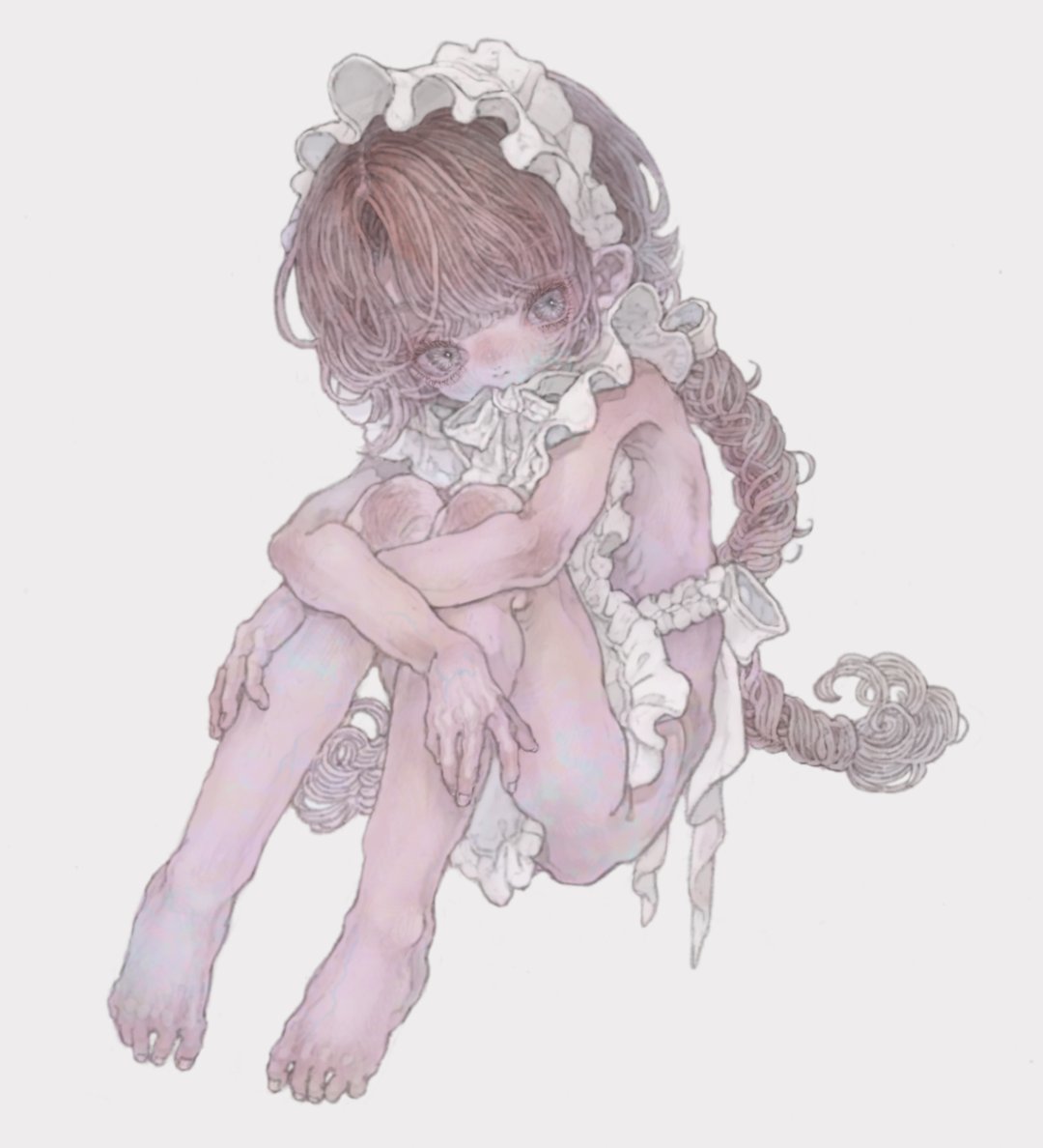 22 439 さっきの絵だと結構隠れちゃっているけれど、ウガツの服は暫定こんなかんじ パンツの裾を天使像がたくし上げているデザイン 23/03/08 23:22