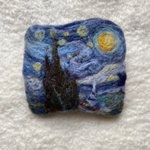 Excited to share this item from my #etsy shop: Starry Night Wool Brooch etsy.me/3kDgD1K My Starry Night Brooch is back in stock again, there is one and only one.... #vangogh #starrynight #wool #woolfelt #felting #needlefelt merinowool #needlefelting #羊毛フェルト