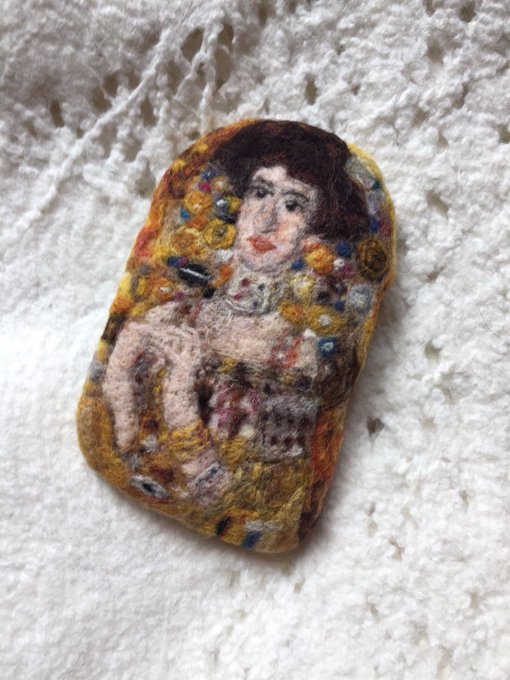 Excited to share this item from my #etsy shop: Portrait of Adele Bloche-Bauer, Wool Brooch etsy.me/35y1Gdd #klimt #wool #woolfelt #wolle #filz #felting #needlefelt #merino #merinowool #woolart #fibreart #fiberart #needlefelting #woolbrooch #brooch #羊毛氈 #羊毛フェルト