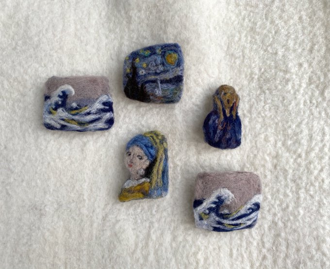 Excited to share this item from my #etsy shop: Van Gogh’s Starry Night Wool Brooch-mini etsy.me/3322SUi A mini version of the Starry Night Brooch now in @Etsy shop! #vangogh #starrynight #woolfelt #felting #merinowool #needlefelting #brooch #羊毛氈 #羊毛フェルト
