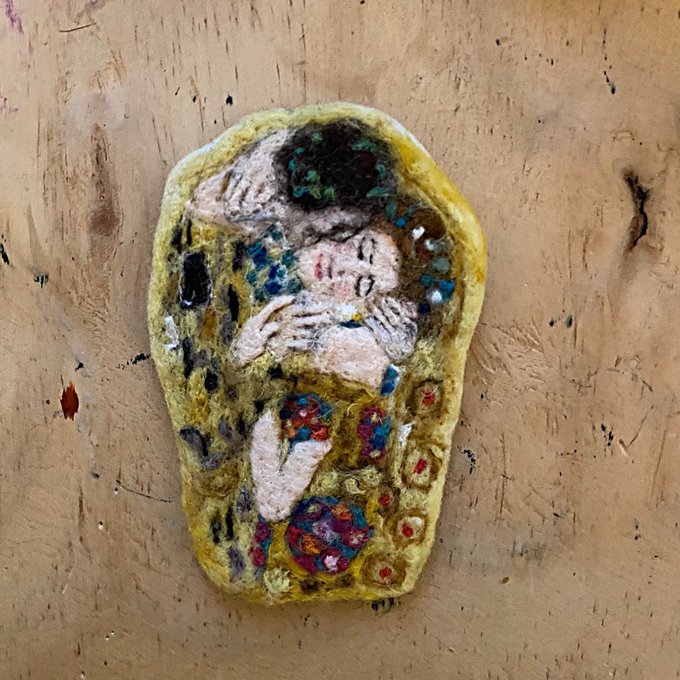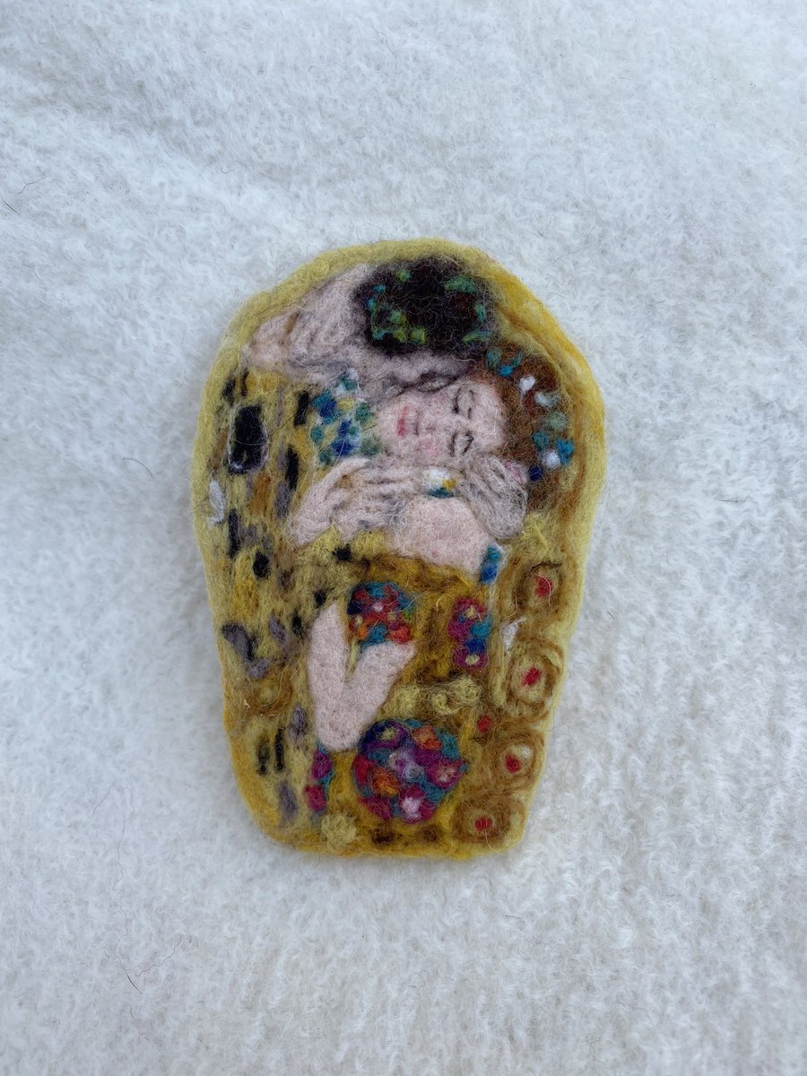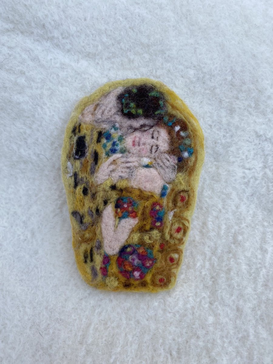 Excited to share this item from my #etsy shop: The Kiss, Wool Brooch etsy.me/3lZ6qOC Just made a new one, so can be available immediately, just one in stock #klimt #etsy @Etsy @HandmadeHour #woolfelt #wool #merinowool #needlefelt #羊毛氈 #羊毛フェルト