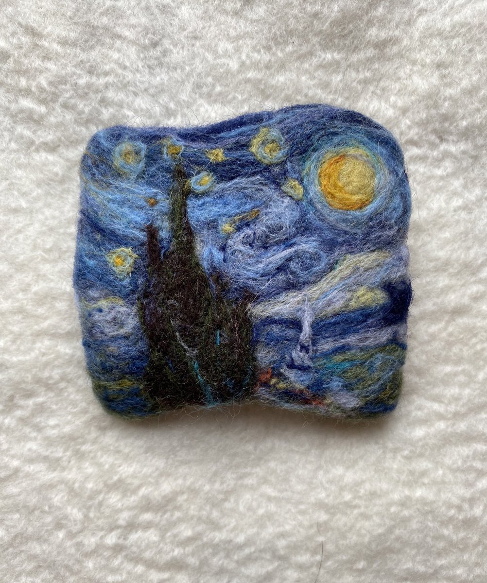 Excited to share this item from my #etsy shop: Starry Night Wool Brooch etsy.me/39GwZVD #vangogh #starrynight #vincentvangogh #wool #woolfelt #wolle #filz #felting #needlefelt #merino #merinowool #woolart #fibreart #fiberart #needlefelting #brooch #羊毛氈 #羊毛フェルト