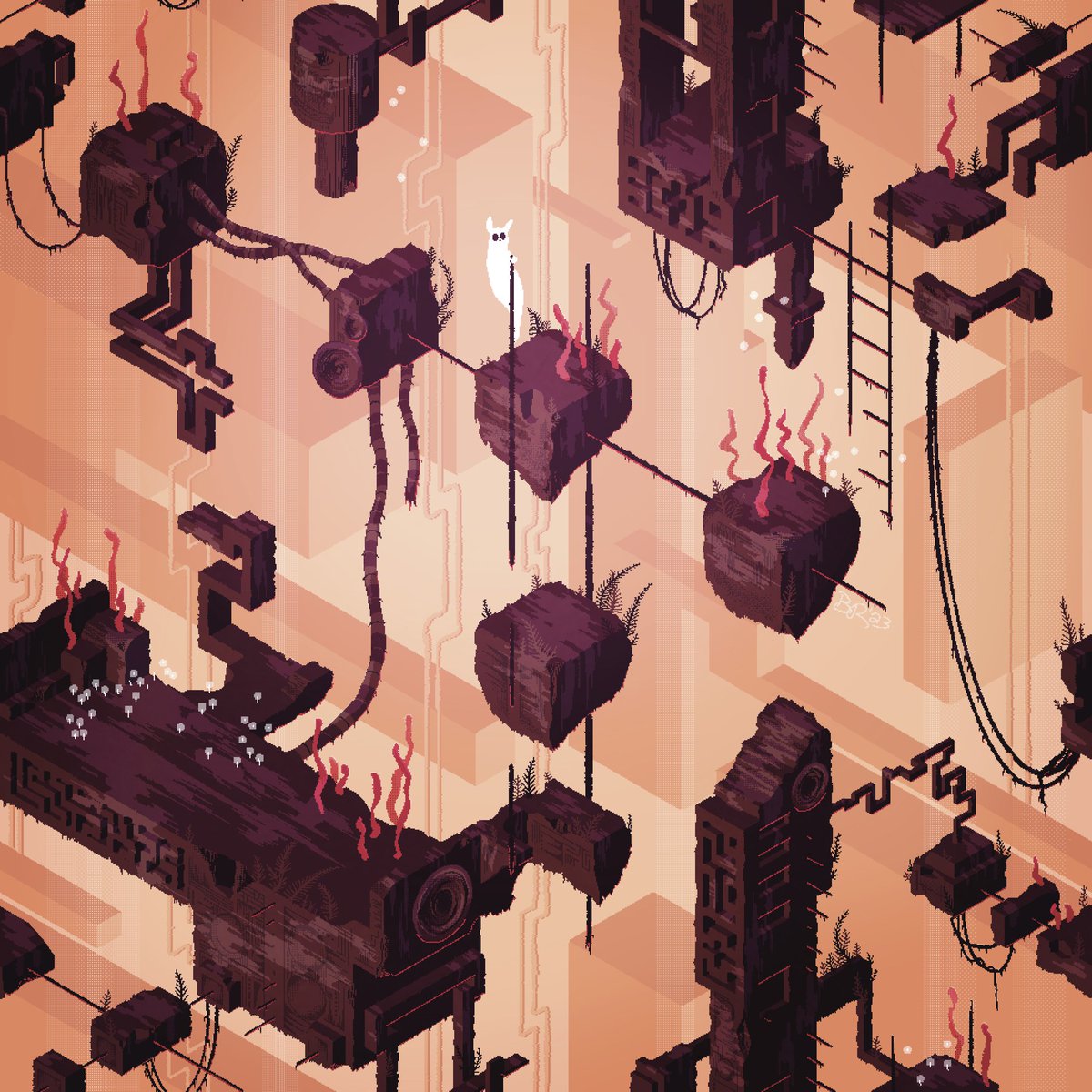 5 30 I decided to try #pixelart for the first time this week (like really try, like with my hands). Here are 2 little isometric #rainworld pieces. More on the way 23/01/11 04:12