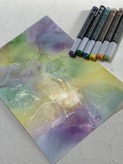 ワークショップへご参加ありがとうございました!アルコールインクアートはじめての方が頑張って作りました🌱✨ #生徒様作品 #アルコールインクアート #習い事 #コピック #絵柄が好みって人にフォローされたい #インクアート #コピックインク #copic @COPIC_Official