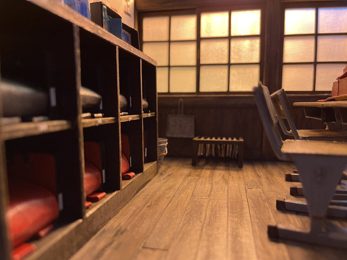 昭和の小学校の廊下 完成 その2 子供の頃に通っていた宇和島の小学校がモデルです。 #自作模型 #ミニチュア #ペーパークラフト