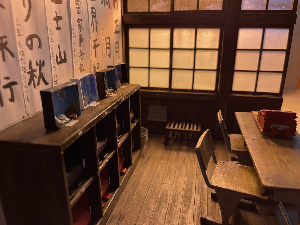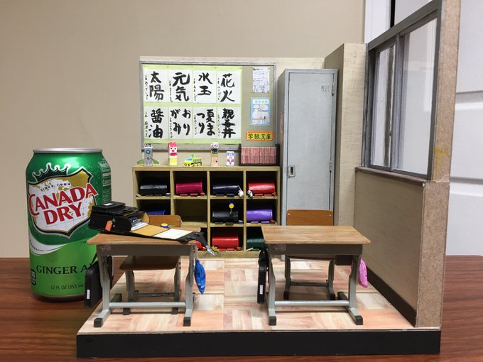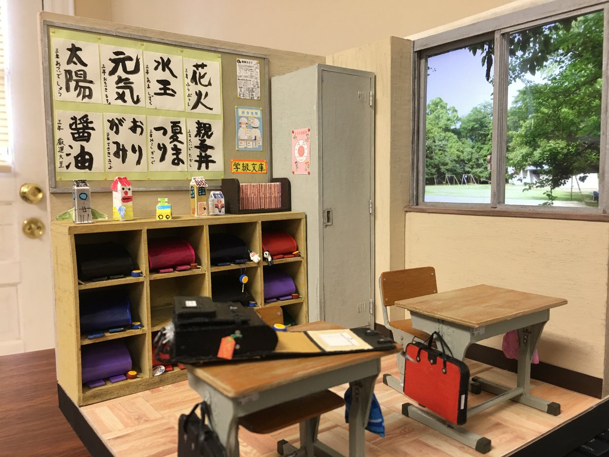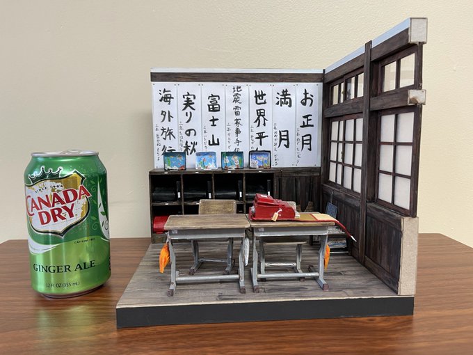 0 1 80年代日本の小学校の教室 完成 その6 1/10サイズで大きさはこれくらい。 以前作った『最近の小学校の教室』と比べてみました。 #自作模型 #ミニチュア #ペーパークラフト 21/05/31 05:33