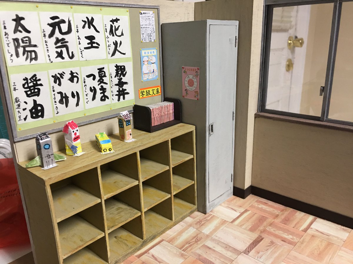 0 3 『小学校の教室』 学級文庫、牛乳パックの工作、掲示板を取り付けてみました。 #自作模型 #ミニチュア #ペーパークラフト 20/11/23 05:45