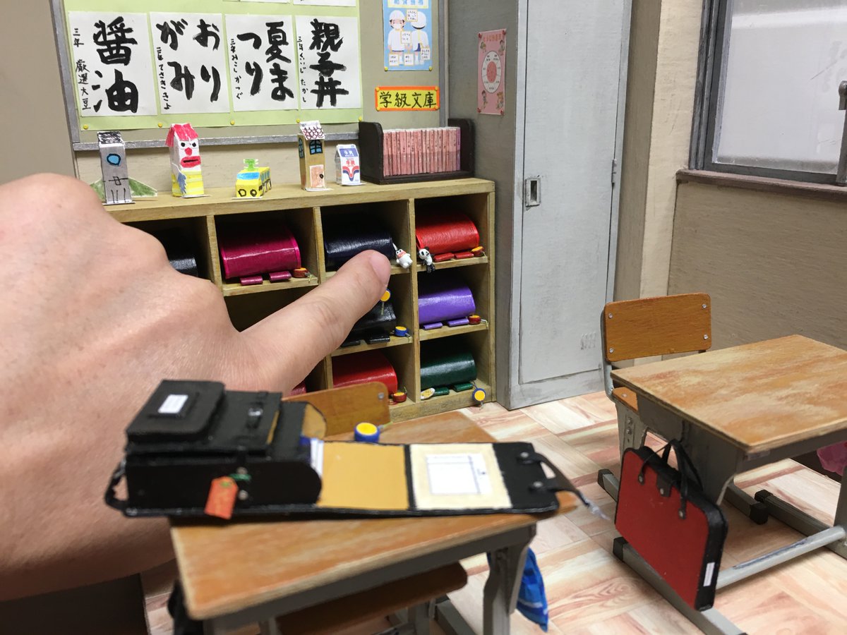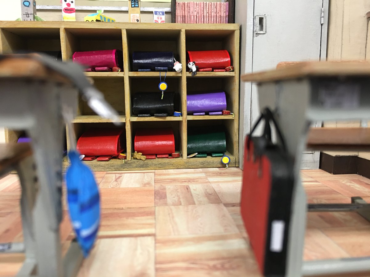 0 1 閉じたランドセルをロッカーに入れて、ランドセルにつけるフィギュアを作って、机を配置して、開いたランドセルを机に上に置きました。 #自作模型 #ミニチュア #ペーパークラフト 20/11/30 01:45
