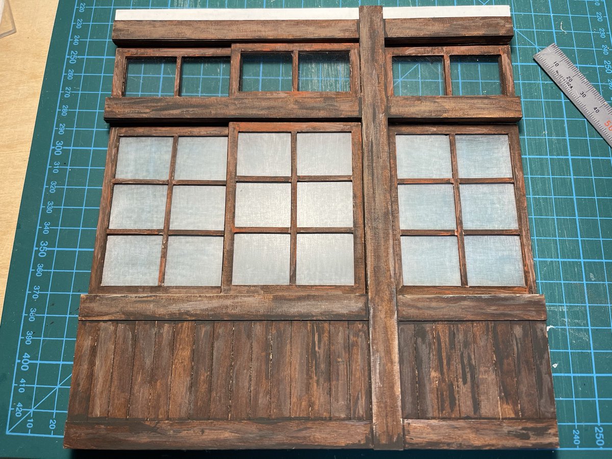 0 1 床板を土台に貼り付け、以前作っていた壁と引き戸を取り付けました。 #自作模型 #ミニチュア #ペーパークラフト 22/02/28 06:00