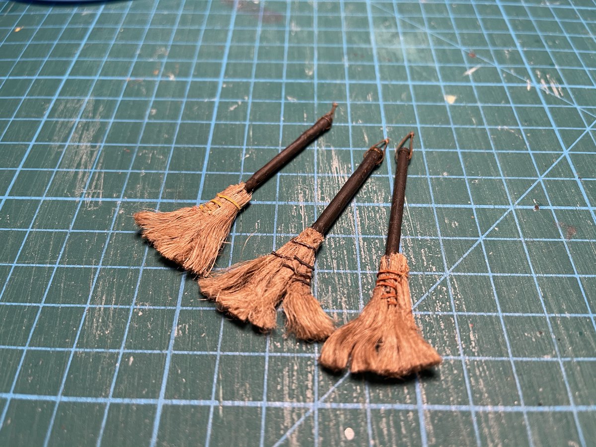 箒と塵取りを作りました。 塵取りは紙製ですが、さすがに箒は紙では作れませんでした。 #自作模型 #ミニチュア #ペーパークラフト