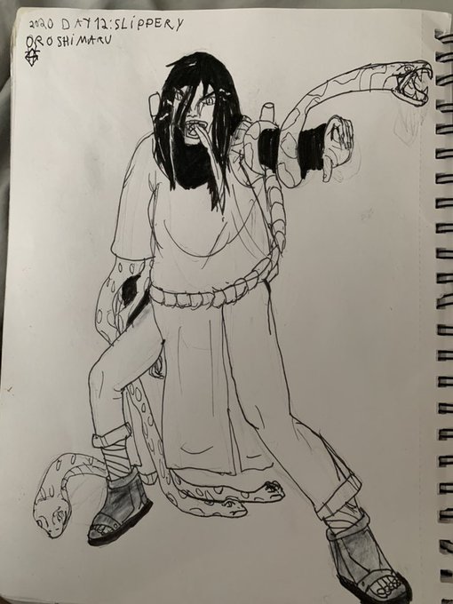 Day12: Slippery. He's my favorite villain in Naruto and it fit today's, hahah #Inktober #inktober2020day12 #Naruto #orochimaru