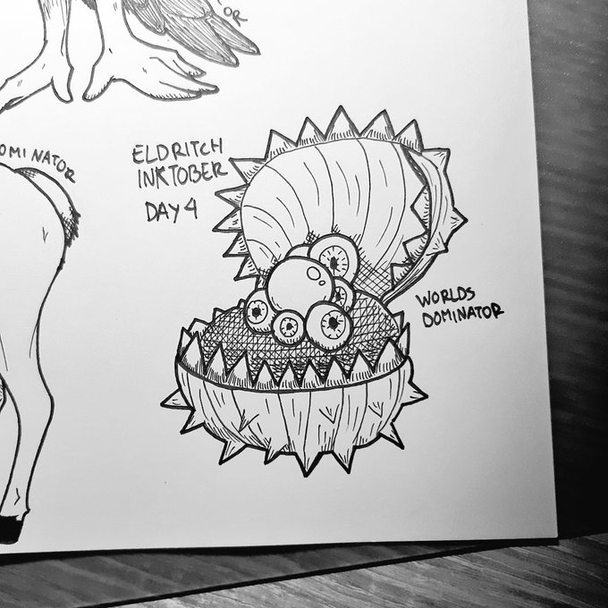 Eldritch #Inktober Day 4! I drew a foothold trap styled Clam! Careful not to grab the wrong pearl or hand gone! #TraditionalArt #Doodles