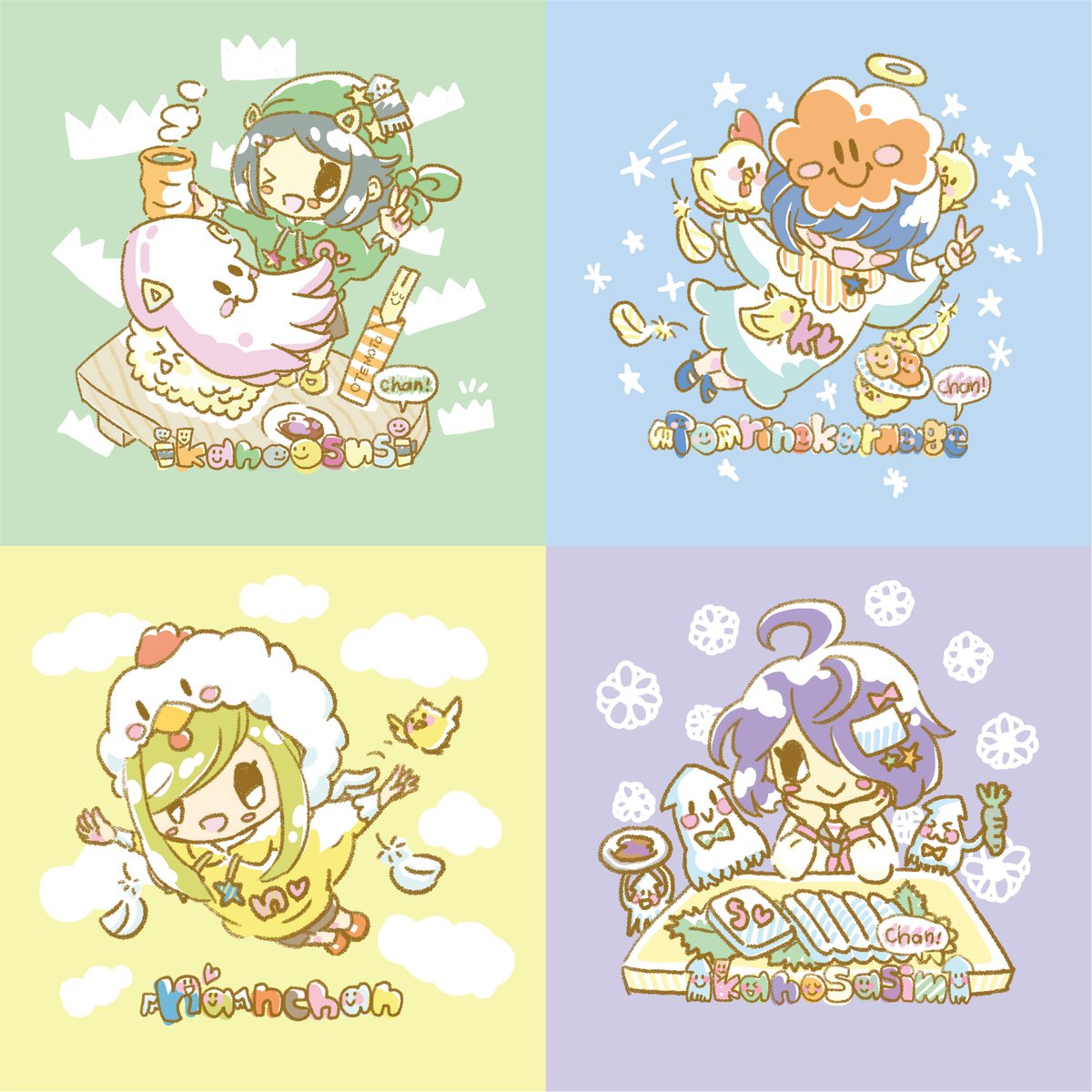 12 43 色んなかわいい楽しいゲーム実況を4人でされてる、しょくぶつさん達のイラストを描かせていただきました!みんな仲良しさんで放送もとってもかわいいんですよー🎀 いかさんチームと鳥さんチームにわかれてて、コンセプトもすっごくかわいい!!キュンキュンしたい方ぜひみにいってみてください💖 22/03/05 12:36