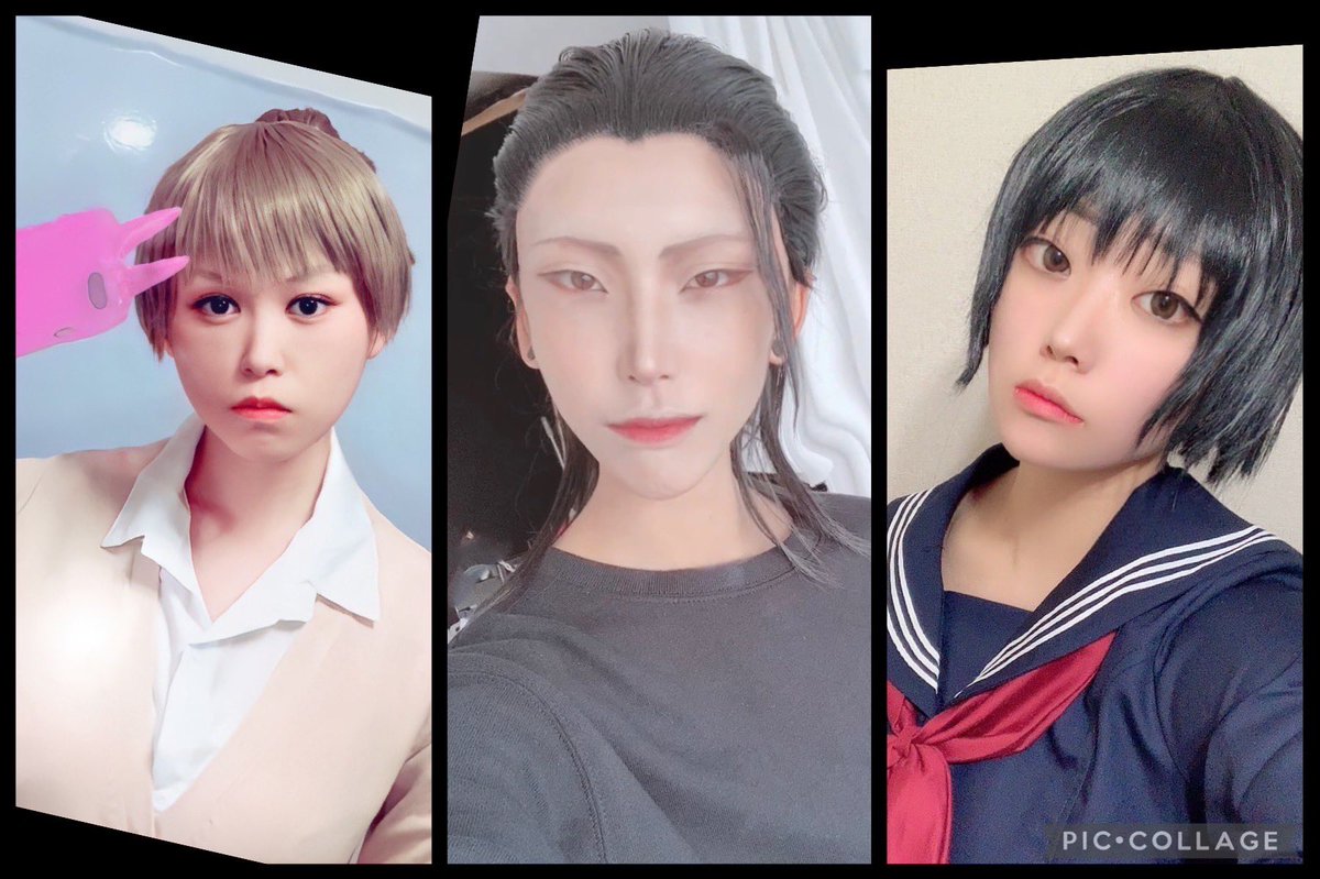 10 24 Cosplay•*¨*•.¸¸☆*・゚ 菜々子と夏油様とエア併せ~🥰 ふふふ本当に併せするのがとっても楽しみ😌映画熱に便乗して上げる😌😌 夏油様@MSZ_1000world 菜々子@00akurituto 美々子@Wrd8V 22/01/01 22:19