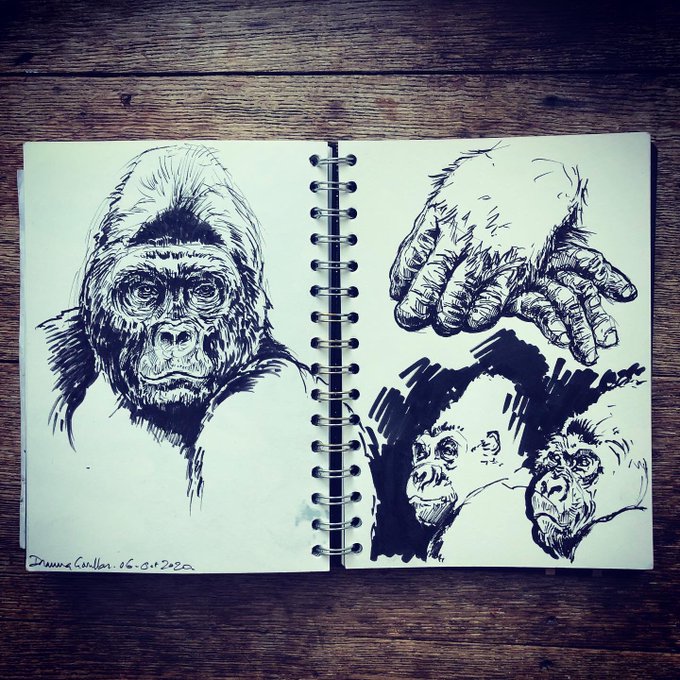 Drawing gorillas this morning - just enjoying some ink brush pens -pre work early morning sketchbook studies to get my head together. #inktober #ink #drawing #thebigdraw #sketchbook #gorillas #apes #draw #duncancameron #illustration #wildlife #pendrawing