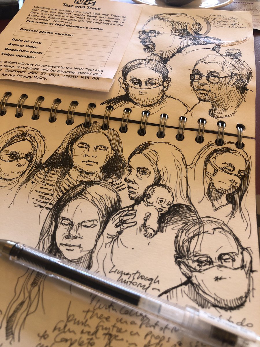 Drawing - again - in Fondu Lounge in Street. Son Freddie getting a haircut. Reflecting, I think one of the things I missed most in lockdown was thinking in cafes. Still living through history. #drawing #inktober2020 #sketch #journal #sketchbook #lifedrawing #duncancameron #draw