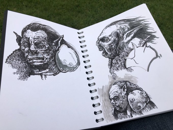 Sketching orcs at football today. Overcast and cool and the Orc subject matter perhaps a reflection on the robust nature of today’s game. Brush pens. #inktober2020 #orcs #LotR #middleearth #Tolkien #draw #sketchbook #journal #sketch