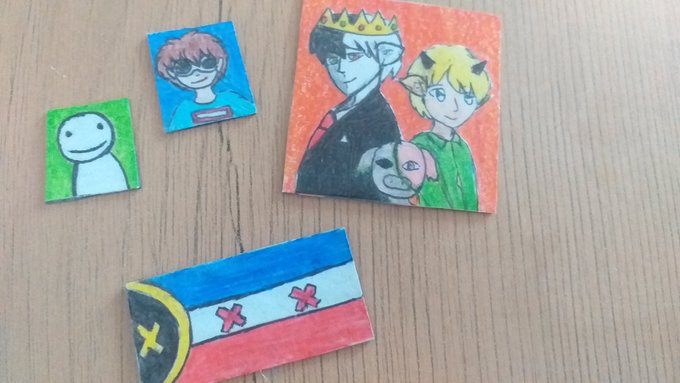 Hi it's my first tweet 👋 I just finished making some dream smp fridge magnets 🙈💚 #ranboofanart #Tubbo #dreamsmp #georgenotfoundfanart #dream #dreamsmpfanart