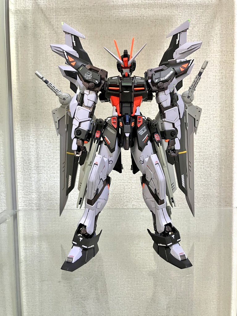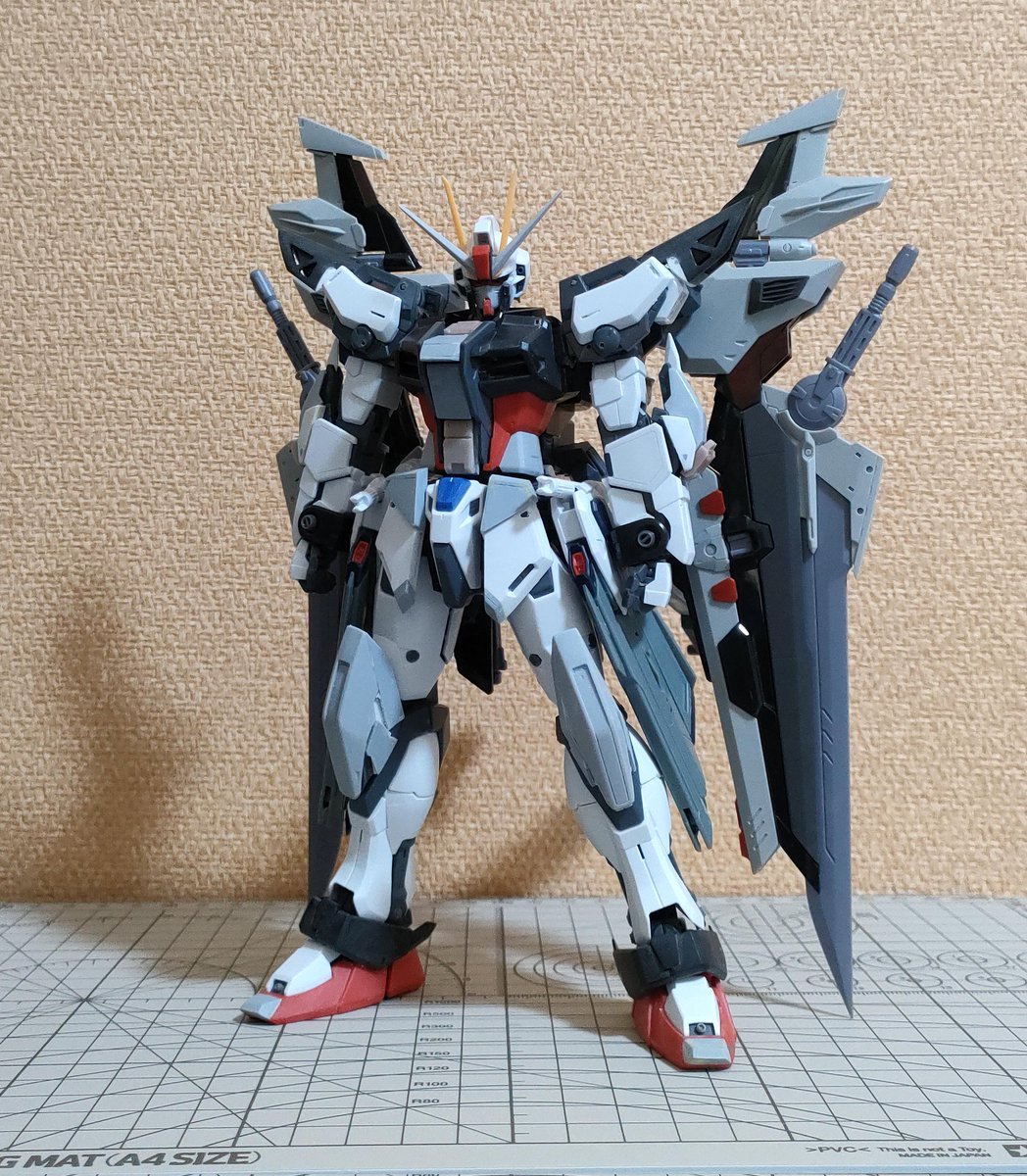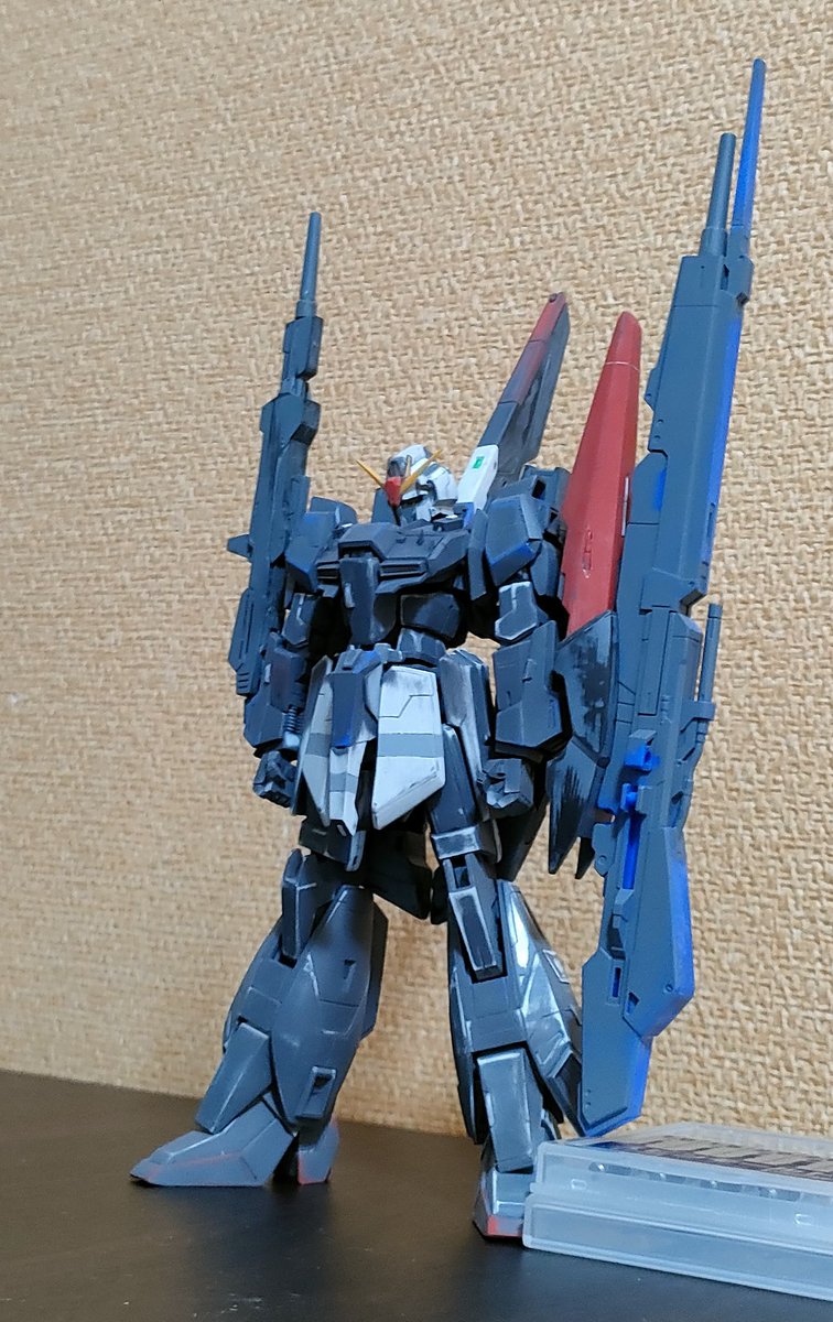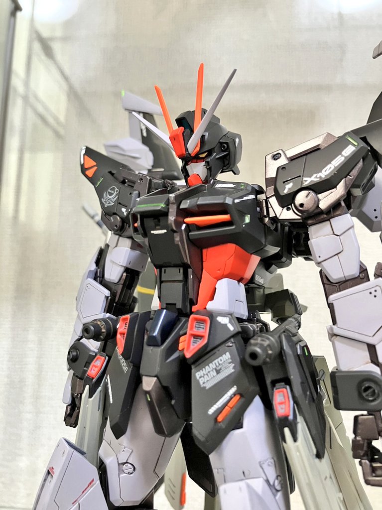 【ストライクノワール】 デカール貼り&コート終了です! 個人的な満足ポイントは、装甲(半光沢)と関節(光沢)のメリハリによるメタルビルドテイストと、重田顔にできたことです😎 きちんとした撮影は後ほど💦 #ガンプラの画像貼るとRTされると聞いて
