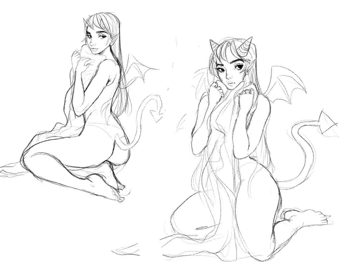 Just some pose practice with cute demon ladies #SeductiveSunday #art #ArtistOnTwitter