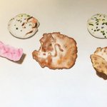 三河屋のお煎餅を描きました。 僕は烏賊のイラストが入ったやつが甘辛くて大好きです。😊 #イラスト好きな人と繋がりたい #芸術の秋 #色鉛筆画