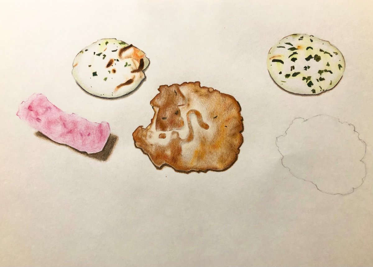1 9 三河屋のお煎餅を描きました。 僕は烏賊のイラストが入ったやつが甘辛くて大好きです。😊 #イラスト好きな人と繋がりたい #芸術の秋 #色鉛筆画 21/11/17 13:25