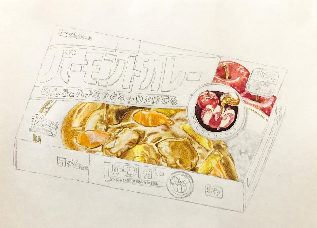 ハウスのバーモントカレーを描きました。 カレーのとろっとした感じが難しかったです。 #色鉛筆 #アート好きな人と繋がりたい #芸術同盟 #カレー